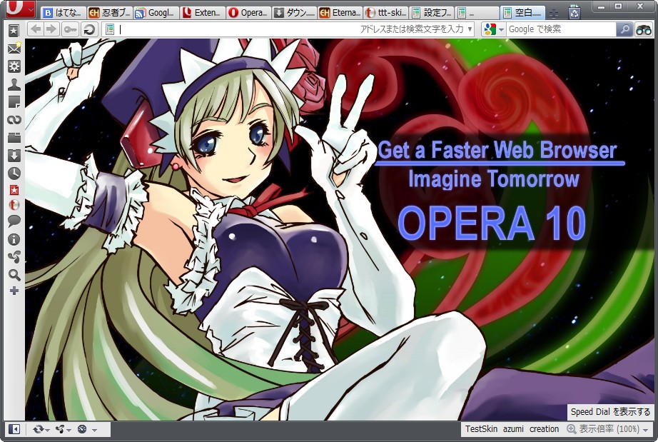 [Speed Dial Widget Blank Skin] てのは opera:config#UserPrefs|SpeedDialState = 0 (Speed Dialを非表示にする)にしたときに表示される要素みたいだ。で、弄ってみたの図↓