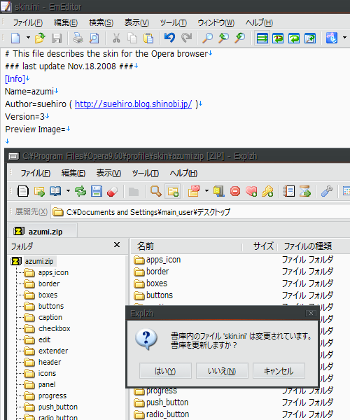 Opera Browser Wiki :: SkinINIChanges を参考に、Opera9.60 skin.ini with images にOpera10 Alfa 1 での変更を追加更新して、ファイルの場所を "http://www10.ocn.ne.jp/~alias/skin_with_image/opera9.6_skin_image.html" に移動した。