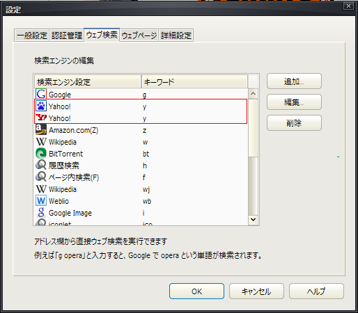 解決法は、profileフォルダにある search.iniをエディタで開いてyahooの検索エンジンのUNIQUEIDを