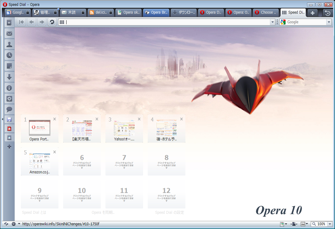 Approaching the final Opera 10.0 release ということなので、慌ててOpera10用にOpera skin.ini with imagesを更新(移動)した。