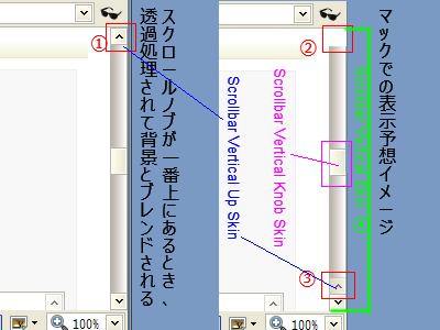 1、3が[Scrollbar Vertical Up Skin]、4が[Scrollbar Vertical Skin]ね。なんでこうなるかと言うと、こういうデザインだから・・・。